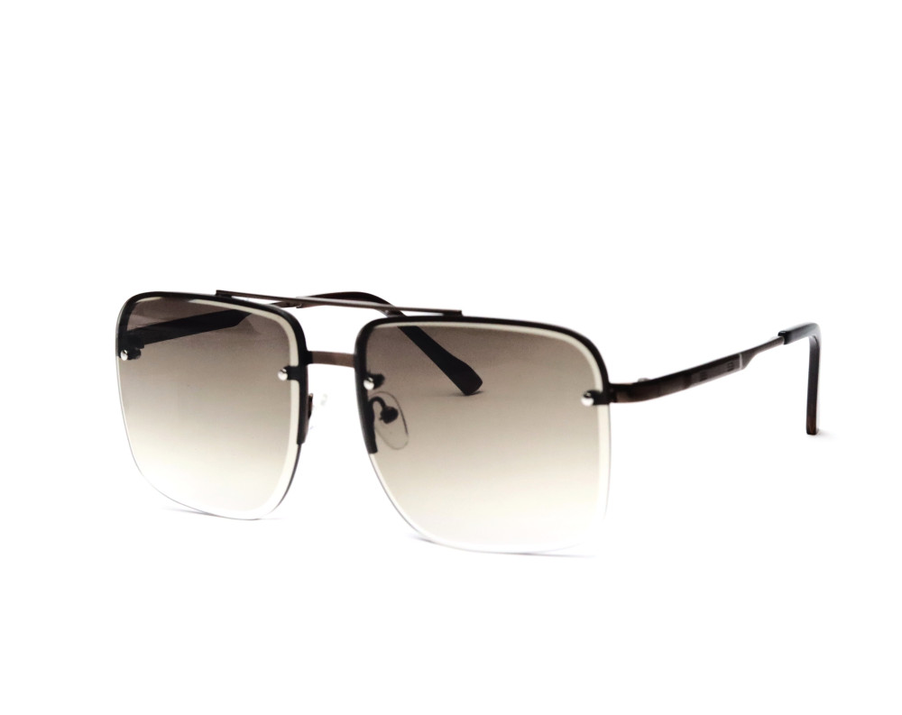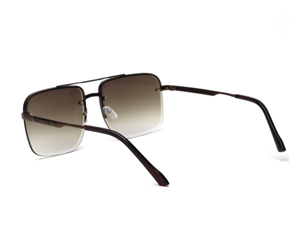 Lead the way with "The Vanguard." These sunglasses represent the forefront of modern eyewear design, featuring a sleek, rimless construction that feels incredibly lightweight and sophisticated. The style is defined by its distinctive double top-bar in a metallic brown finish, creating a sharp, architectural look. With smooth brown gradient lenses offering full UV protection, "The Vanguard" is the perfect choice for the modern man who values precision and clean, contemporary style.